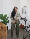 Olive green patch crop jacket